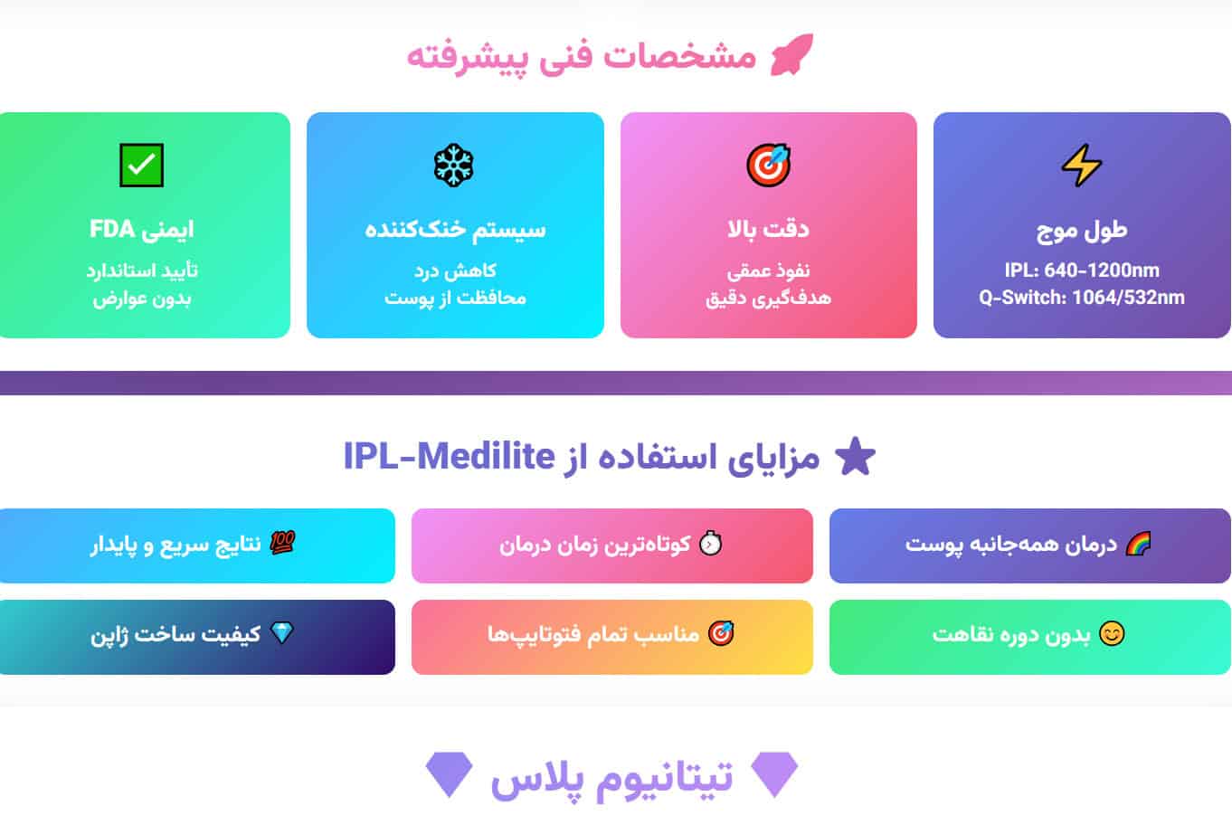 خصوصیات ، ویژگی ها و مزیت های دستگاه IPL-Medilite